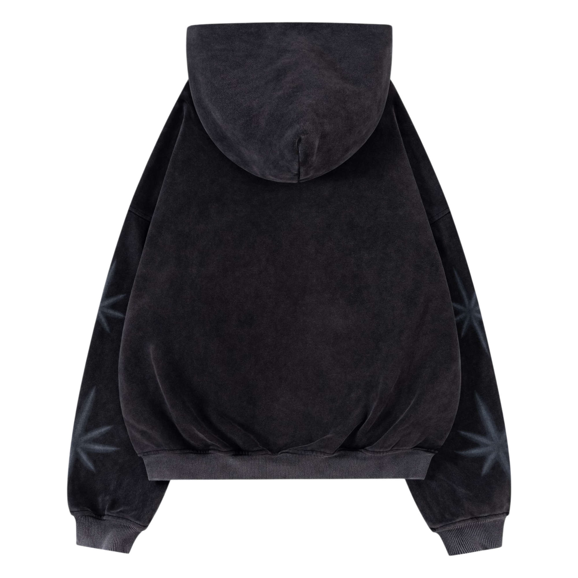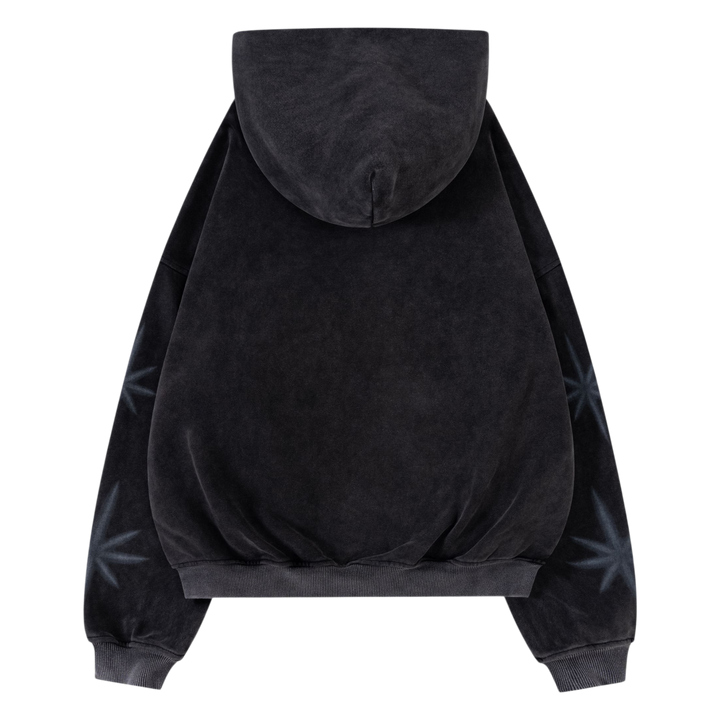 • a deep, charcoal-black tone with a faded edge for a bold yet worn-in feel