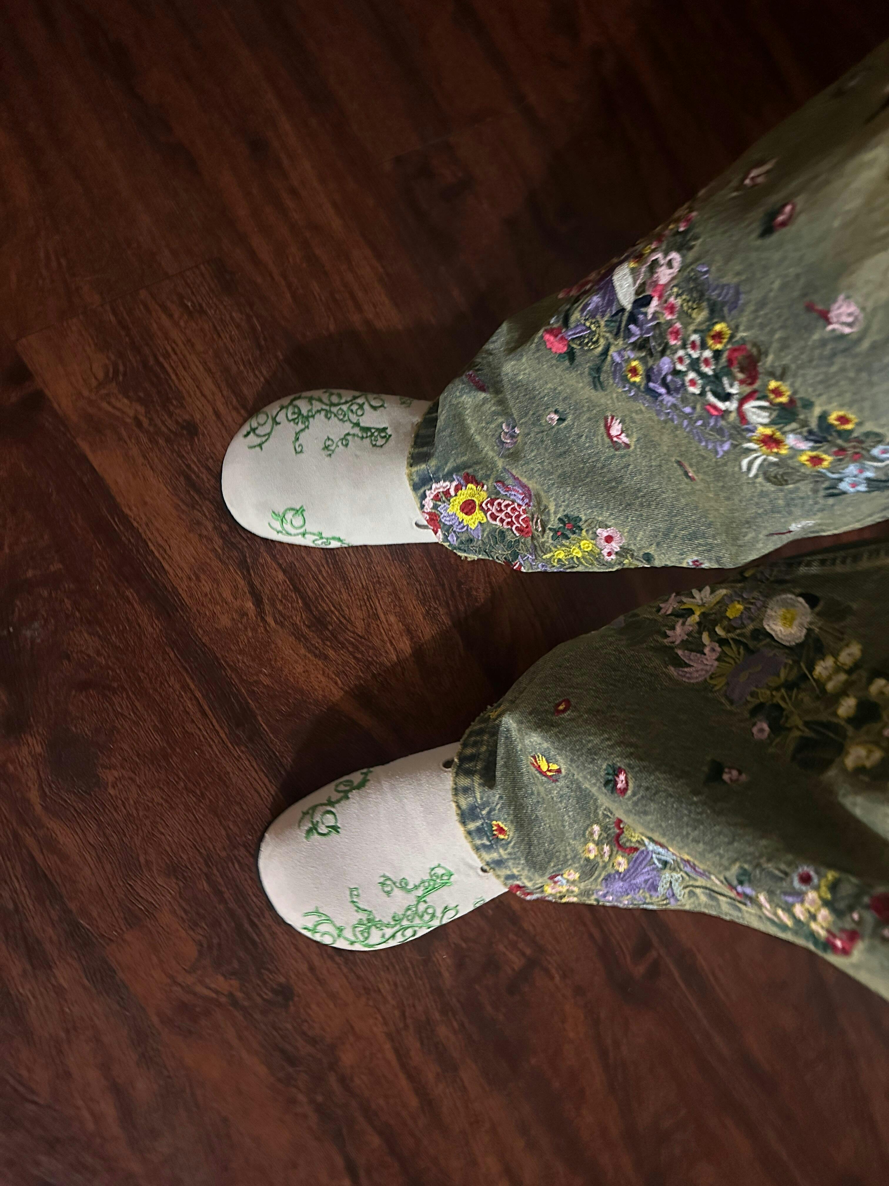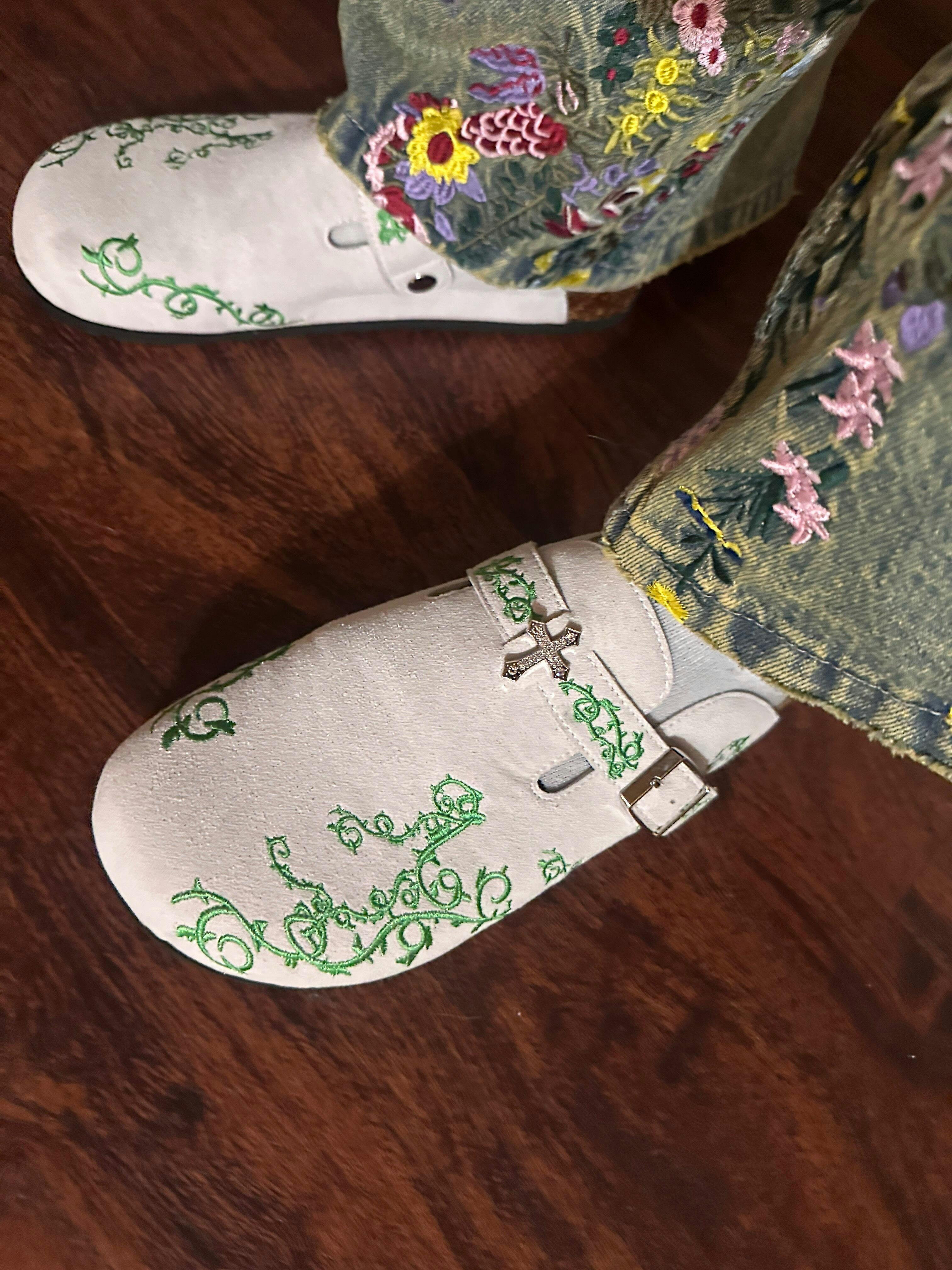 Intricate Vine Embroidery – over 300 precision stitches woven into the suede for depth, artistry, and durability.